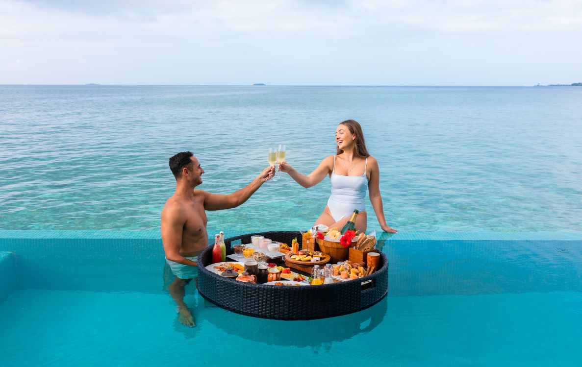 Families can enjoy the Family Getaway Package, which allows one child under 12 to stay and dine for free, along with three hours of complimentary babysitting per day at the Koka Kids Club for children aged 2 to 4. Couples can select the Cherishing Love in Paradise Package, which includes in-villa or deck breakfasts, floating breakfasts in Ocean Suites, a romantic candlelit beach dinner, and a 30-minute photoshoot at a designated location or in the villa.