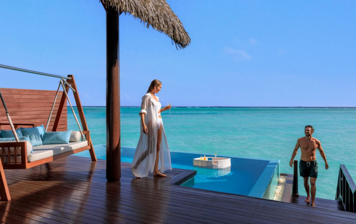 For those seeking privacy and serenity, the adults-only Ocean Suites provide overwater living with sweeping views, private decks, and direct lagoon access. Each suite includes a serene plunge pool, personal wine cellar, infinity pool, and full butler service, alongside exclusive access to a dedicated bar and restaurant. These secluded suites offer the perfect sanctuary for relaxation and intimate escapes.