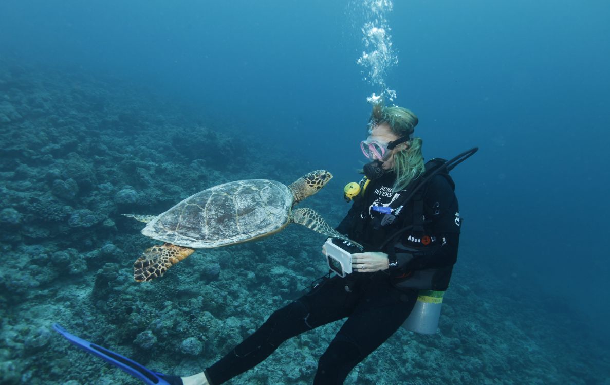 Moving along their usual coral routes, these turtles have become part of Eri’s house reef community — named and logged through repeated sightings, and offering returning divers the chance to recognise and befriend them over time. Eri also invites guests to take part in this ongoing effort, where they will be given the chance to name any new turtle they discover that hasn’t been documented previously.