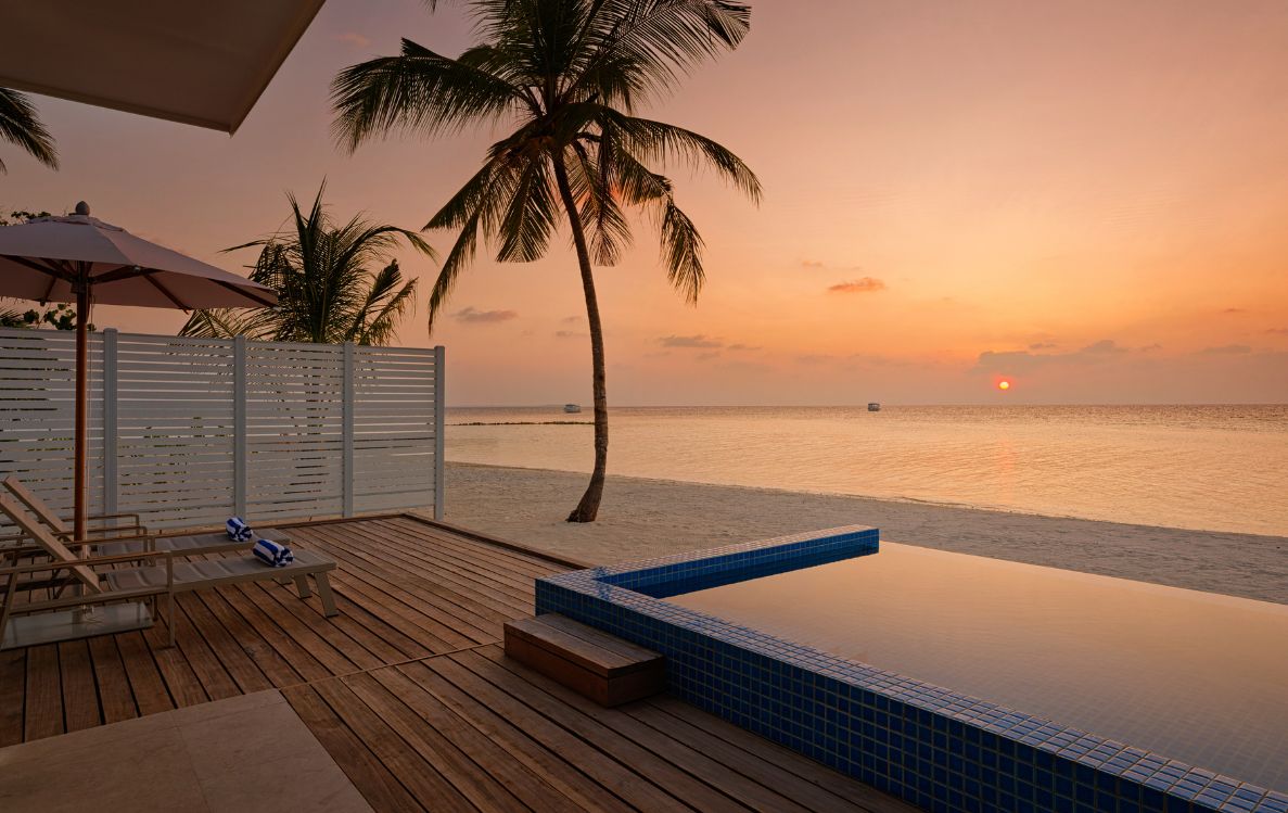 Following sun-filled days, guests can choose from a range of accommodation options. The Sky Studio offers elevated views across the island’s tropical landscape and surrounding ocean, while Beach Villas provide direct access to the shoreline. For added privacy, Beach Pool Villas feature private pools surrounded by greenery, creating a more secluded retreat.