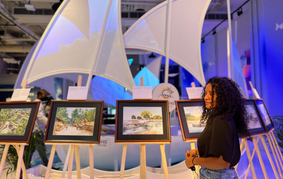 Shimha Shakeeb is known for her beautiful watercolor paintings that capture the landscapes, architecture, and traditions of the Maldives. She has exhibited her work at Dubai Expo 2020, Crossroads Maldives, and the National Art Gallery in Malé, and has worked with well-known institutions and resorts, including The Ritz-Carlton Maldives.