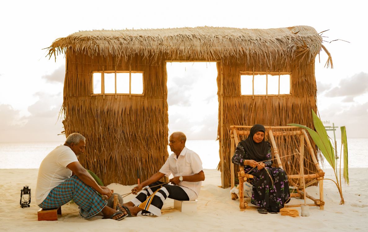 Artisans demonstrated Hanu lathe, how it is used in the sharpening of the Kathivalhi chopping blade, and the versatile Furoa axe, offering insight into craftsmanship passed down through generations. Guests observed the intricate Roanu Veshun technique of coir rope braiding and the delicate Fangi Vinun craft of weaving coconut fronds into kajan roofing, a once-essential, fully renewable building material.