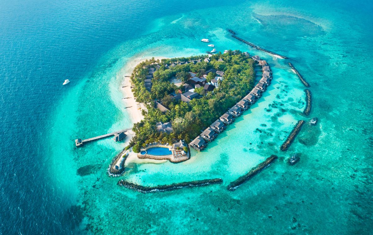 For those who prefer their island getaway with a dash of adventure, Taj Coral Reef Resort & Spa on Hembadhu Island offers a vibrant alternative. This heart-shaped island is a diver’s dream, featuring its very own house reef and a dramatic shipwreck that serves as a playground for exotic marine life.